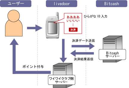 そのひらがな ID をサイト内で入力し送信すると、弊社サーバーからビットキャッシュ側へ