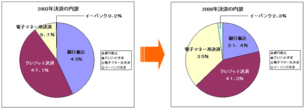 これから現在の決済割合を以前と比べてみると下記のようになります。