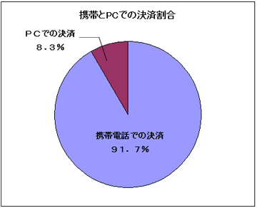 PC・携帯それぞれから決済可能ですが、実際は携帯決済が9割以上で、PC決済は1割未満です。