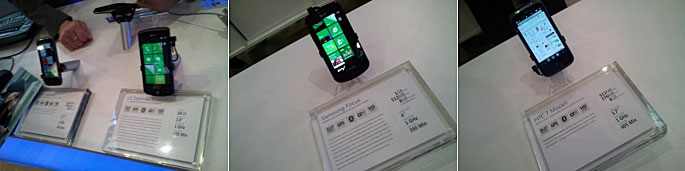 ▼左: LG Optimus7 中央: Samusung Focus 右: HTC Mozart
