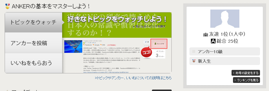 ANKERには経験値のようなパラメータが存在し、投稿を重ねたり「いいね!」を貰うと、段級位が上がっていきます。この段級位は単なるパラメータではなく、ヘルプメッセージの出しわけにも使われます。初級者の頃には表示されるヘルプメッセージが、中級者になると現れなくなるのです。